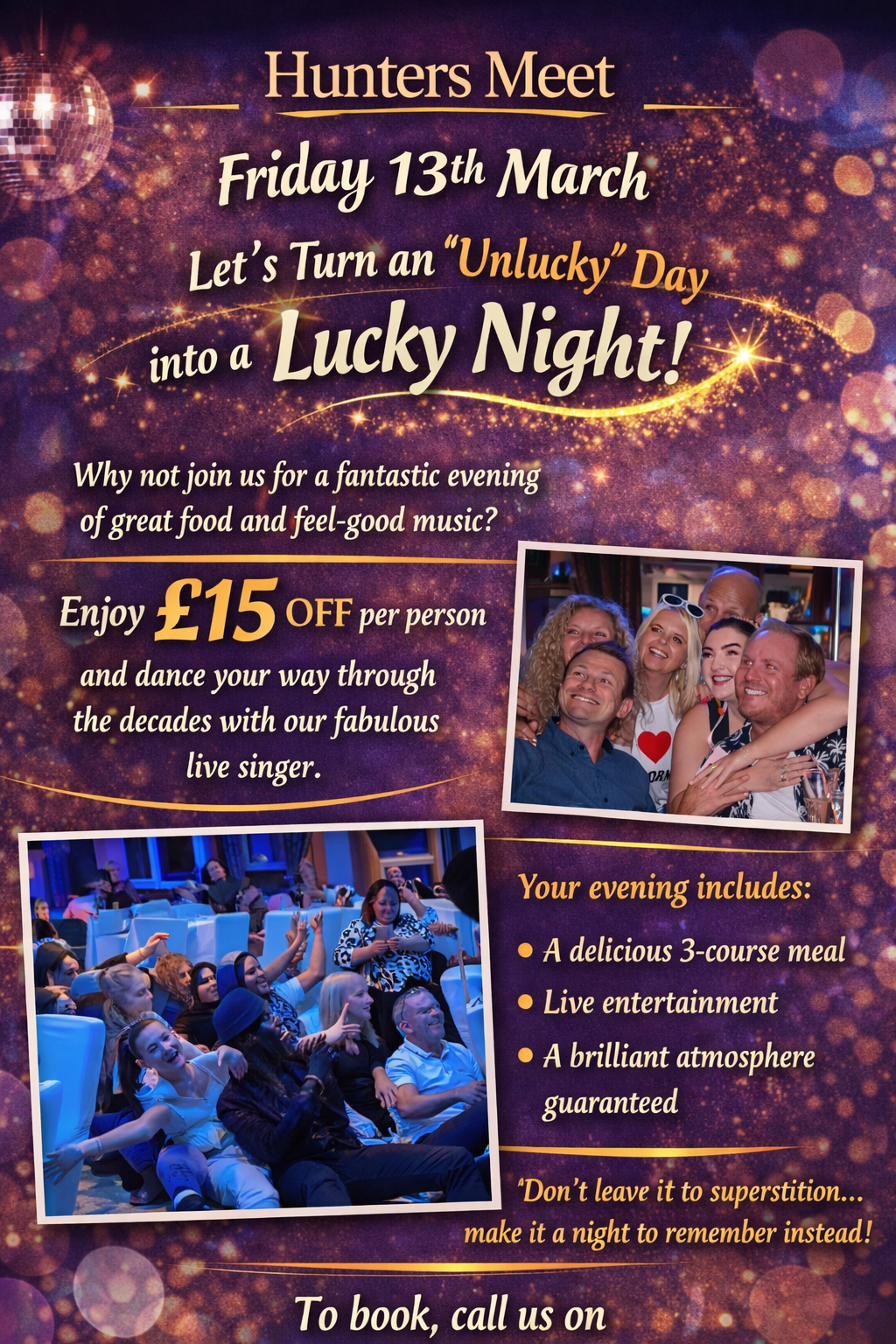 Enjoy a 4-course meal and live entertainment for just £45 per person.